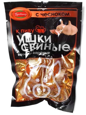 Уши свиные варено-копченые с чесноком